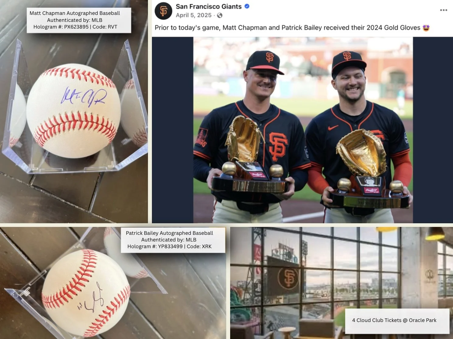 SF Giants ✳︎ 4 Cloud Club Tix ✳︎ Chapman ✳︎ Bailey ✳︎ Signed Baseballs SF Giants ✳︎ 4 Cloud Club Tix ✳︎ Chapman ✳︎ Bailey ✳︎ Signed Baseballs SF Giants ✳︎ 4 Cloud Club Tix ✳︎ Chapman ✳︎ Bailey ✳︎ Signed Baseballs Return to online auction Buy it now at greater giving Home